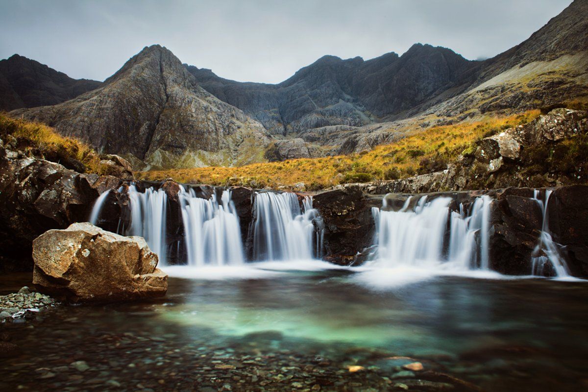 Situated at Glenbrittle on the Isle of Skye, Fairy Pools, a waterfall oasis takes the top spot.