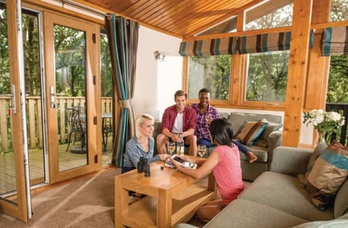 Very comfortable lodge with one double and one twin. Bath with overhead shower and separate shower room with sauna. Dishwasher. Open plan lounge/kitchen/dining area leading onto terrace with outdoor hot tub. No pets.