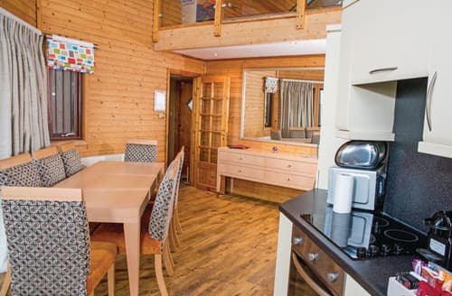Superb two storey lodge with spectacular views across the valley and out to sea. Ground floor: One double with ensuite shower. Two twin both with ensuite bath with overhead shower. Modern, open plan kitchen/dining area with French doors leading out to decking. First floor: Spacious living area with pull down double bed. Dishwasher. Outdoor hot tub. Pets.
