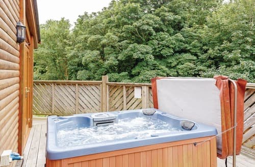 Contemporary and stylish lodge perfect for couples. Double four poster with ensuite bath with overhead shower. Open plan lounge/dining area with 42" TV and Blu-ray player. Kitchen with dishwasher. Timber decked balcony with outdoor hot tub. No pets.