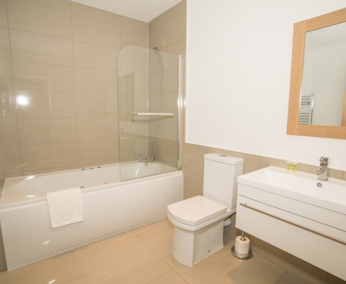 Family BathroomFamily bathroom with wash basin, toilet, bath with shower and Jacuzzi