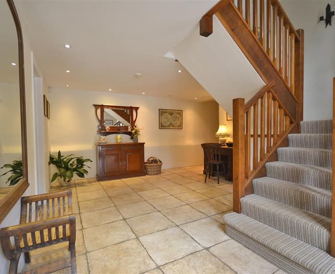 This magnificent, very spacious, detached 200 year old barn conversion is set deep in the South Devon countryside in a quiet hamlet off the old coach road between Salcombe and Kingsbridge, just 3 miles from the South Hams coastline and sandy beaches. The property is furnished, decorated and equipped to the highest standard and within its mellow ancient walls the light spacious living areas have large windows that overlook the lovely gardens that feature a fine terrace, a stream, a pond and extend on to pastureland beyond. Easton Court adjoins a working dairy farm with a herd of approximately 100 Fresian cattle and enjoys lovely country views across the neighbouring farmland.