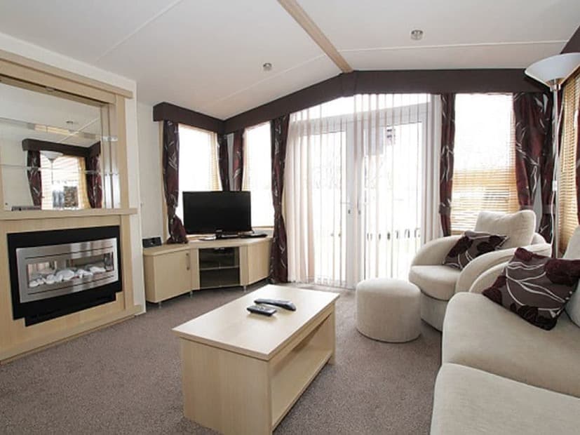 12ft-wide caravan with one double with ensuite wc and two twin. DVD. Double glazed and centrally heated. Verandah with garden furniture.