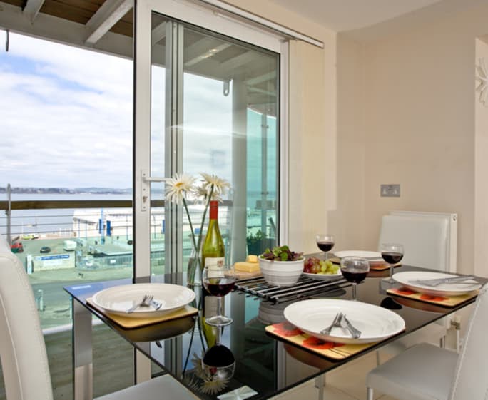 The open plan living, kitchen and dining space makes it easy to spend time together, and what better way to spend an evening than by tucking into a home cooked meal before settling down to watch a film in the stylish living space? With access to the private terrace, you’re just a step away from a breath of air and a moment with the sea views, and the terrace makes a peaceful spot to watch the sun set after a busy day exploring Portland.