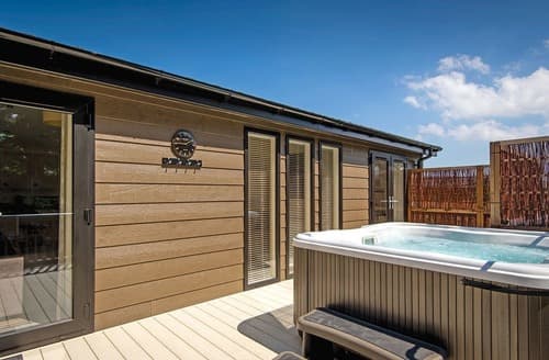 Extra large, stunning contemporary and luxurious lodge. Master king size bedroom with TV, walk in wardrobe, ensuite shower and patio doors to decked area overlooking open fields. One double and one twin. Family bathroom with bath. Spacious open plan living and dining area with fitted kitchen with dishwasher and washer/dryer. 55" Smart TV and DVD. Patio doors leading to large wraparound decking area with several seating areas and steps down to patio area with outdoor hot tub all with fabulous open countryside views. Perfect for families or groups of friends.
