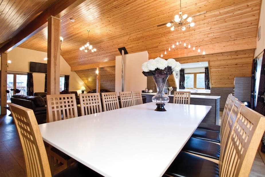 Outstanding lodge. Ground floor: Four double and two twin, all with ensuite shower. Sauna. Patio with outdoor hot tub. First floor: Grand, spacious and spectacular open plan lounge/kitchen/dining area leading onto large balcony. Unique casino themed games room with roulette wheel, card table and a snooker table. Additional WC.