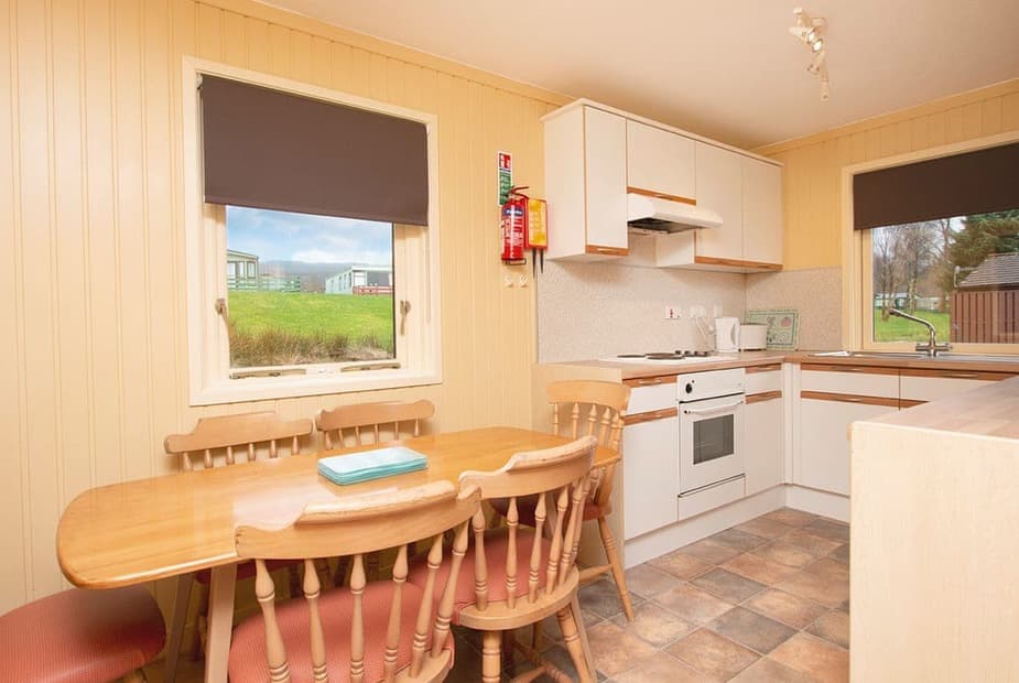 Needs up dated . Fridge to small for six people. Dinning table only had four chairs instead of six.both settees far to low. Shower pressure to low to have a decent shower.needs a good lick of paint.