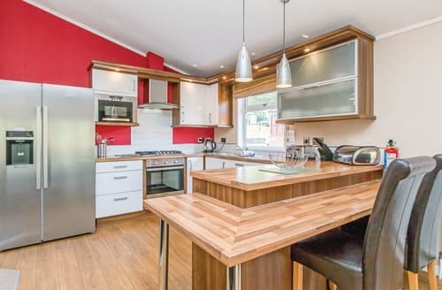 Spacious A-frame lodge with one double and one twin upstairs both with ensuite bath with overhead shower. Traditional interior. Additional sleeping for two in the lounge area. Dishwasher and freezer. Shower. Verandah and picnic table.