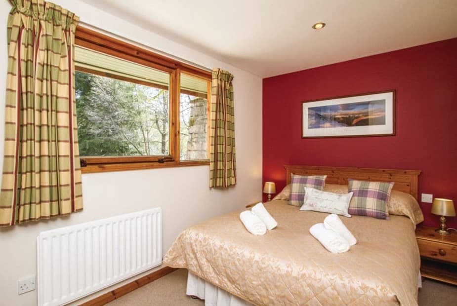 Fantastic luxury lodge situated in an elevated riverside setting. One master double with ensuite luxury double shower. Light and spacious open plan living area comprising of kitchen and dining area and decking affording fantastic views of the River Fechlin and mountains. Double glazed and centrally heated. Outdoor hot tub.