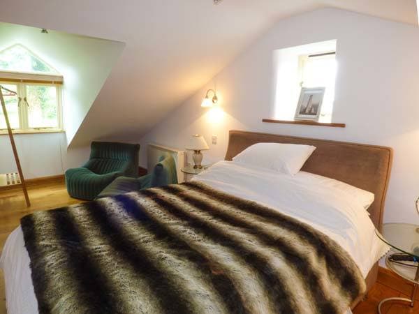 Moving into the impressive sitting room you will want to sit and relax on the comfy corner sofa in front of the woodburner straight away, perhaps before enjoying a romantic meal at the dining table overlooking the spacious lawned gardens. The pretty bedroom is well-appointed with a king-size bed. Careful thought has been put into the lighting throughout the property to create an ambience to suit all moods and make this a delightful, relaxing cottage both inside and out. The rear patio is a superb sun trap, and overlooks half an acre of lawn and woodland, which although shared with next door, offers peace and privacy.