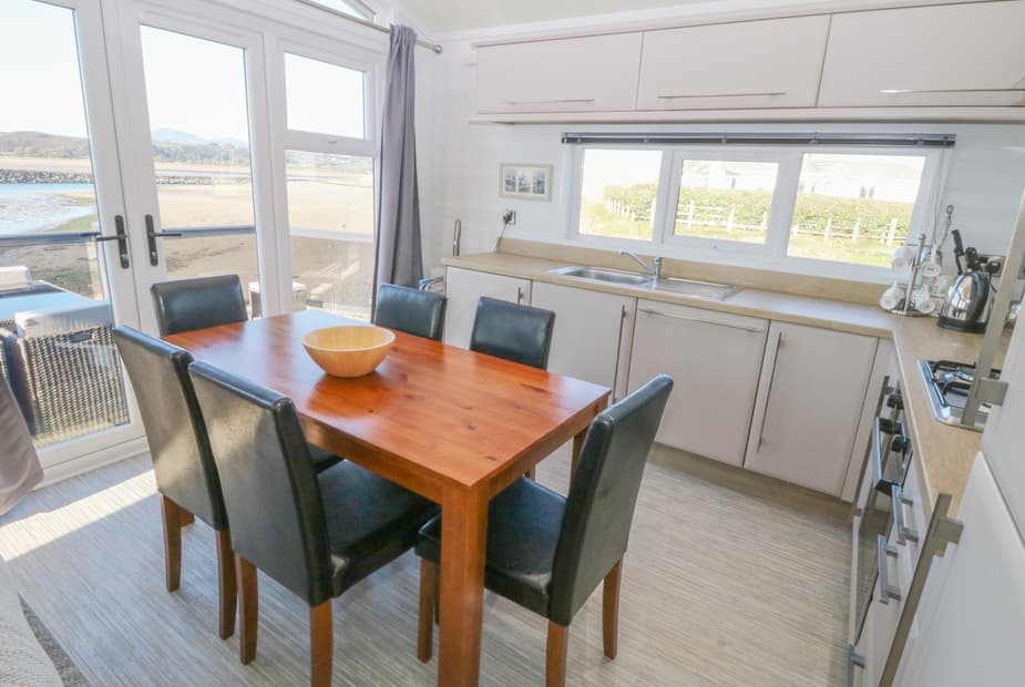 This refreshing lodge is situated on the prestigious Gimblet Rock Holiday Park, only a five-minute walk to the beach, and overlooking the tranquil water and mountains. Join the family for a memorable getaway by paying a visit to this one-of-a-kind haven which consists of a quality interior which goes hand in hand with the remarkable location. From the sitting room, enjoy views out over the lovely mountains, welcoming the sunshine in throughout the day, with a fire projecting warmth as the night begins to cool. Patio doors open up to the outside should you wish to continue the evening on the patio area, alternatively just relax on the sumptuous sofas in front of the wall-mounted TV.