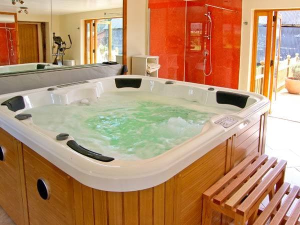 Hot tub for 6 with additional wet room shower and French doors to sun deck.